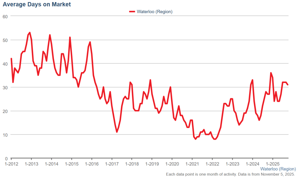 While October home sales in Waterloo Region lag behind historical averages, activity did pick up compared to September. With more listings available than we typically see this time of year and borrowing costs beginning to ease, buyers have the opportunity to explore a wider range of options.
